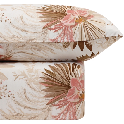 Crafted from ultra-soft, pre-washed microfibre for a smooth, breathable feel. Features a soothing floral palm pattern inspired by tropical serenity. Set includes a comforter and 2 matching pillowcases. 100% Microfibre Polyester.
