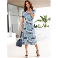 Pretty and wonderfully comfortable jersey dress with a lovely paisley pattern design. Flattering round neckline, short sleeves and shaping Viennese seams at the front and back. Swinging A-line skirt. 95% Viscose, 5% Elastane.
