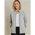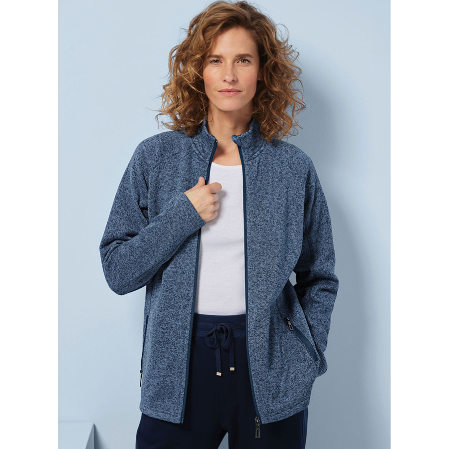 Sporty lounge jacket with brushed Thermolactyl fleece, stand-up collar and top-stitched cutouts for structure and style. Polyester.