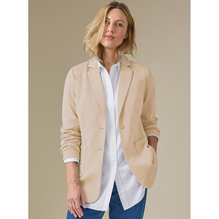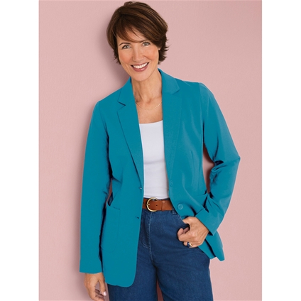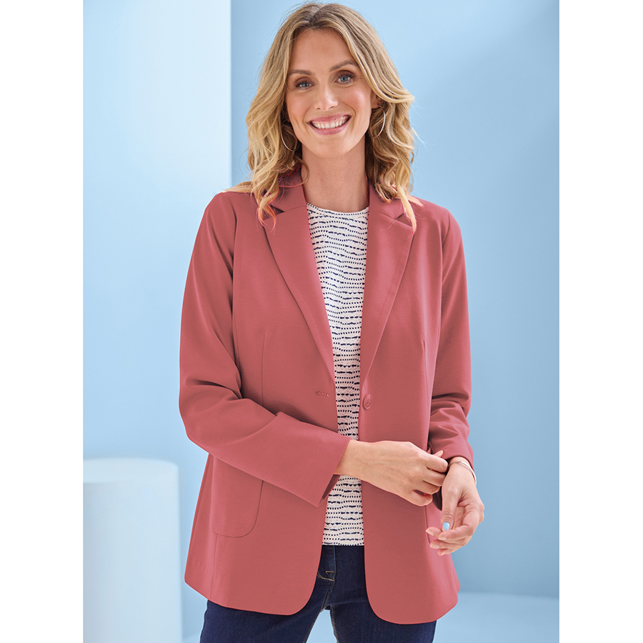 A fully lined two-button blazer in wrinkle-resistant double-knit fabric, featuring patch pockets and a back vent for comfort, fit and easy everyday wear. Main: 78% Polyester, 18% Viscose, 4% Elastane. Lining: 100% Polyester