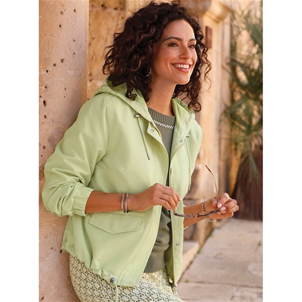 Soft to the touch, casual in appearance: the blouson is the ideal companion for the transitional season. With a zipper, covered by a windproof press stud placket with decorative zigzag stitching. The width of the hood and hem can be adjusted with a drawstring, cord and stoppers. Fashionably longer hem at the back. Wide elasticated cuffs. 2 flap pockets with press studs. 1 inside pocket. 100% Polyester.