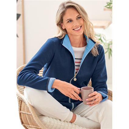 Thanks to its double layer of fleece, this jacket offers great comfort. Warm and super soft, it’s ideal for lounging around the house or doing a little activity... Fashion tip, roll up the sleeves to reveal the contrasting colour. 100% Polyester.