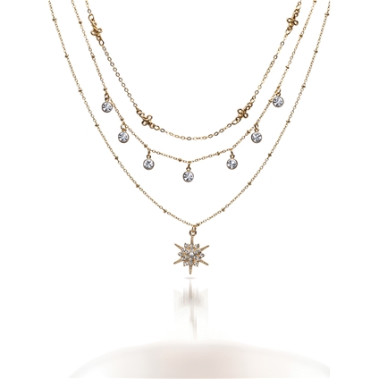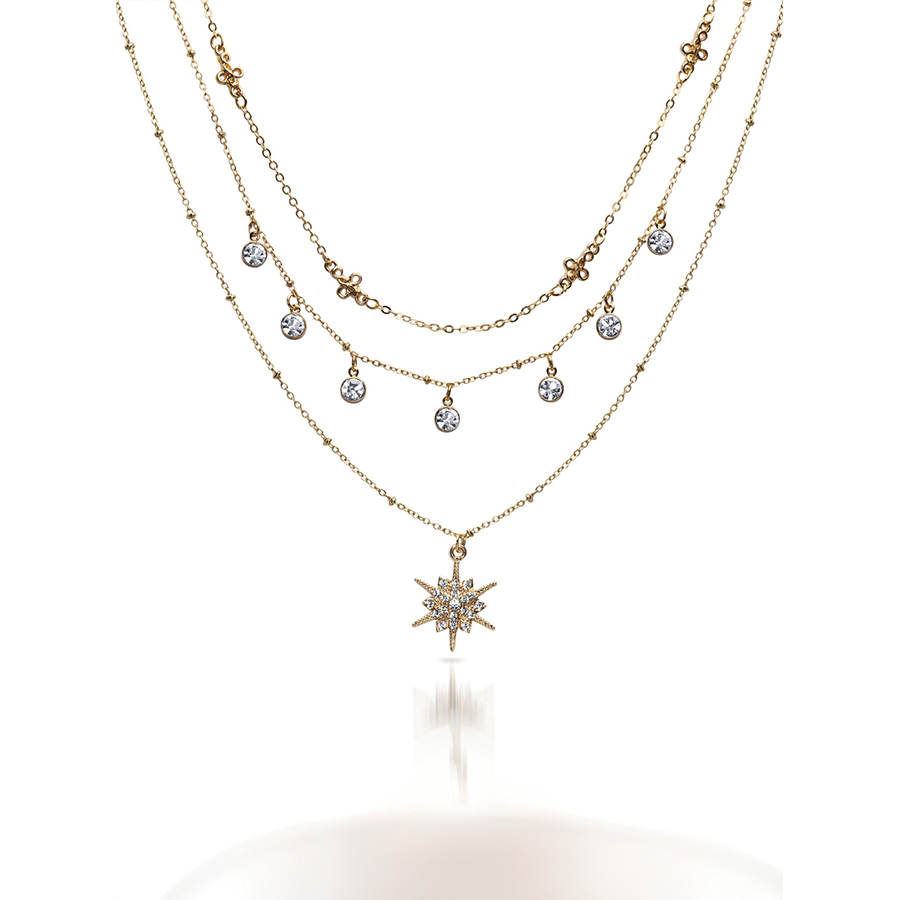 Gold tone necklace with clear crystals. Lengths – 34.3 cm / 38.1 cm / 44.5 cm.