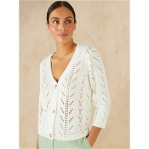 Long sleeve button front cardigan with patch pockets and chunky knitted design. 100% Acrylic.
