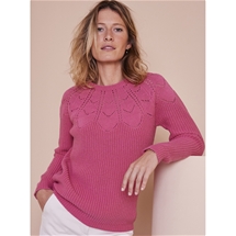 In a wonderfully soft cotton mix, this sweater is so comfortable and breathable. Featuring elegant lacy details, a round neckline, and long sleeves. This pretty sweater will look and feel great to wear no matter your occasion. 50% Cotton, 50% Acrylic.