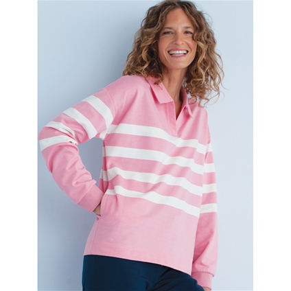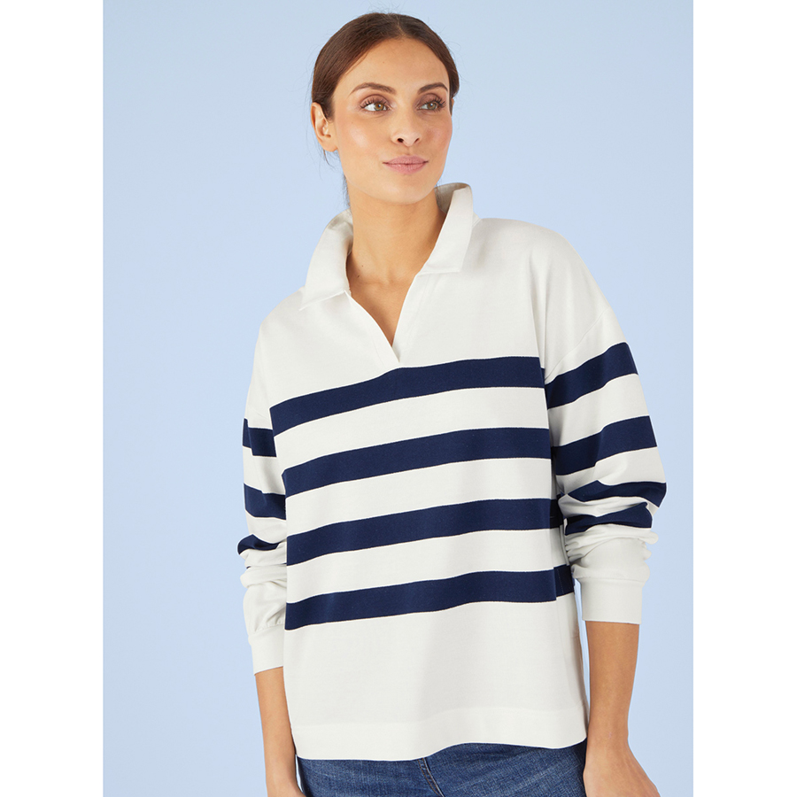 Soft, striped and effortlessly cosy. This fleece sweatshirt blends comfort with casual style, featuring polo style collar, drop sleeves, side pockets and a relaxed fit. 60% Cotton, 40% Polyester.
