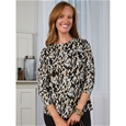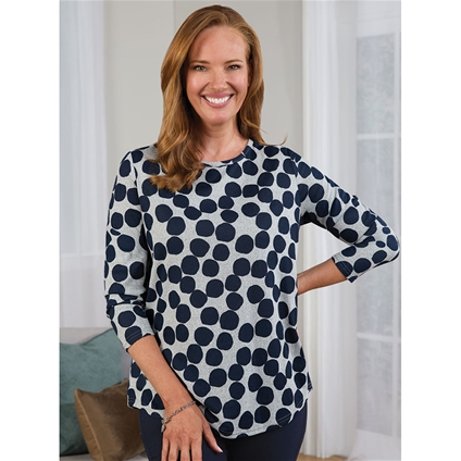 Round‑neck, relaxed‑fit printed jumper with a flattering hi‑lo curved hem for easy everyday style. 97% Polyester, 3% Elastane.