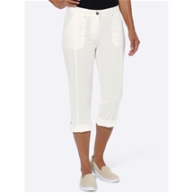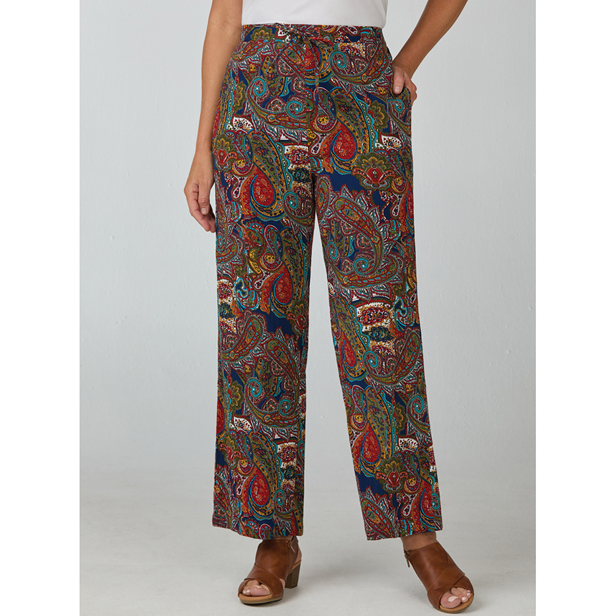 Wide straight leg pant with drawstring and elasticated waist at the back. Side and back pockets. Lined to the knee. 100% Crinkle Cotton