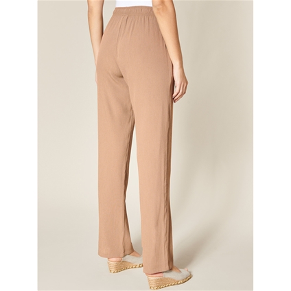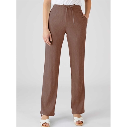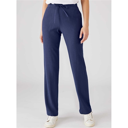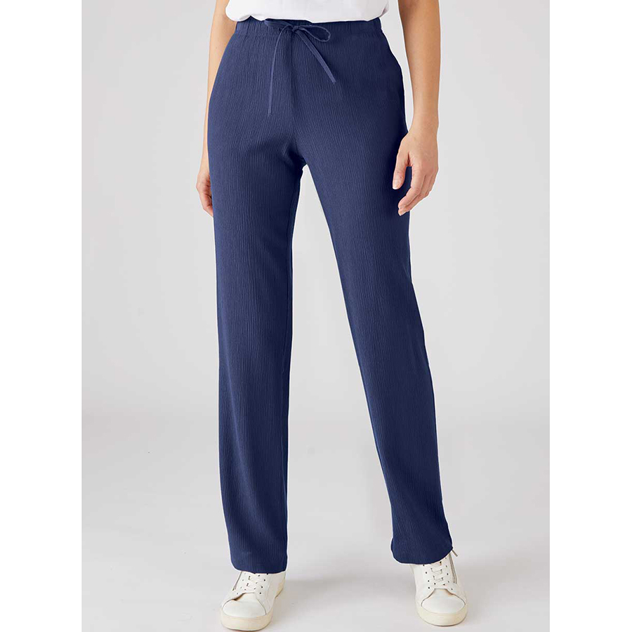 Pull-on crinkle trousers with full elastic waist to ensure the right fit and flattering line. Side pockets and front drawstring. Feel-good fabric that never needs ironing. 60% Viscose, 40% Polyester. (outer leg length 99cm-106cm).