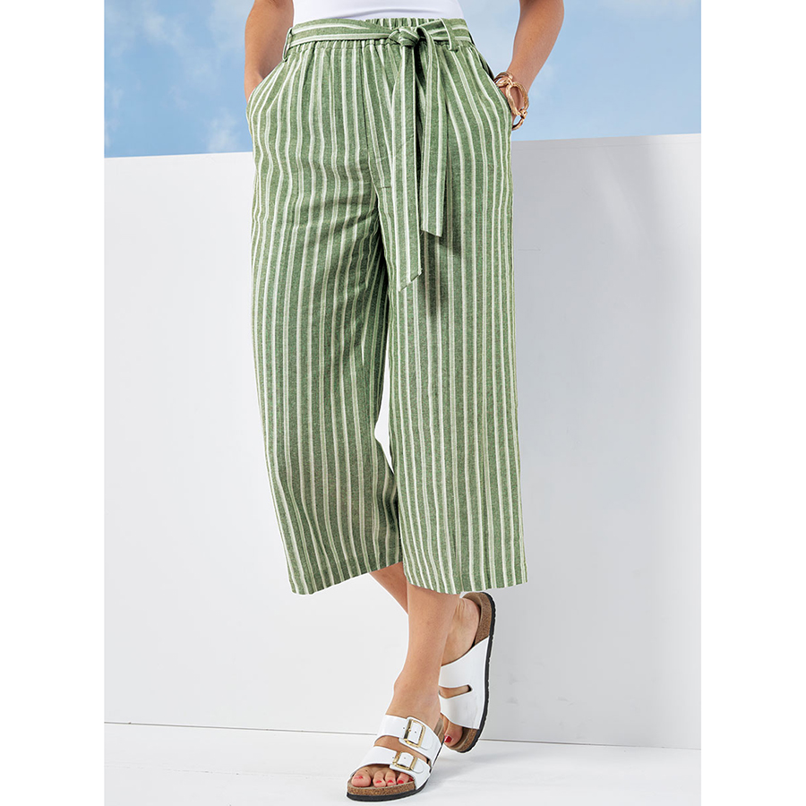 These classic capris will be your favourite wear everywhere style. Made from linen and viscose, they’re cool, comfortable and feature stylish detail with a stretch tie waist, back welt pockets... and with a wide leg they bring a flattering fit and flared silhouette too. A great addition to all wardrobes, they pair perfectly with absolutely any tee.