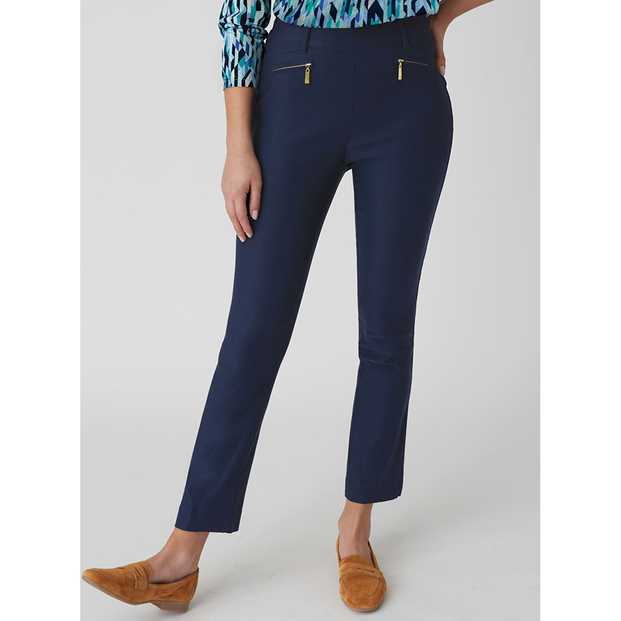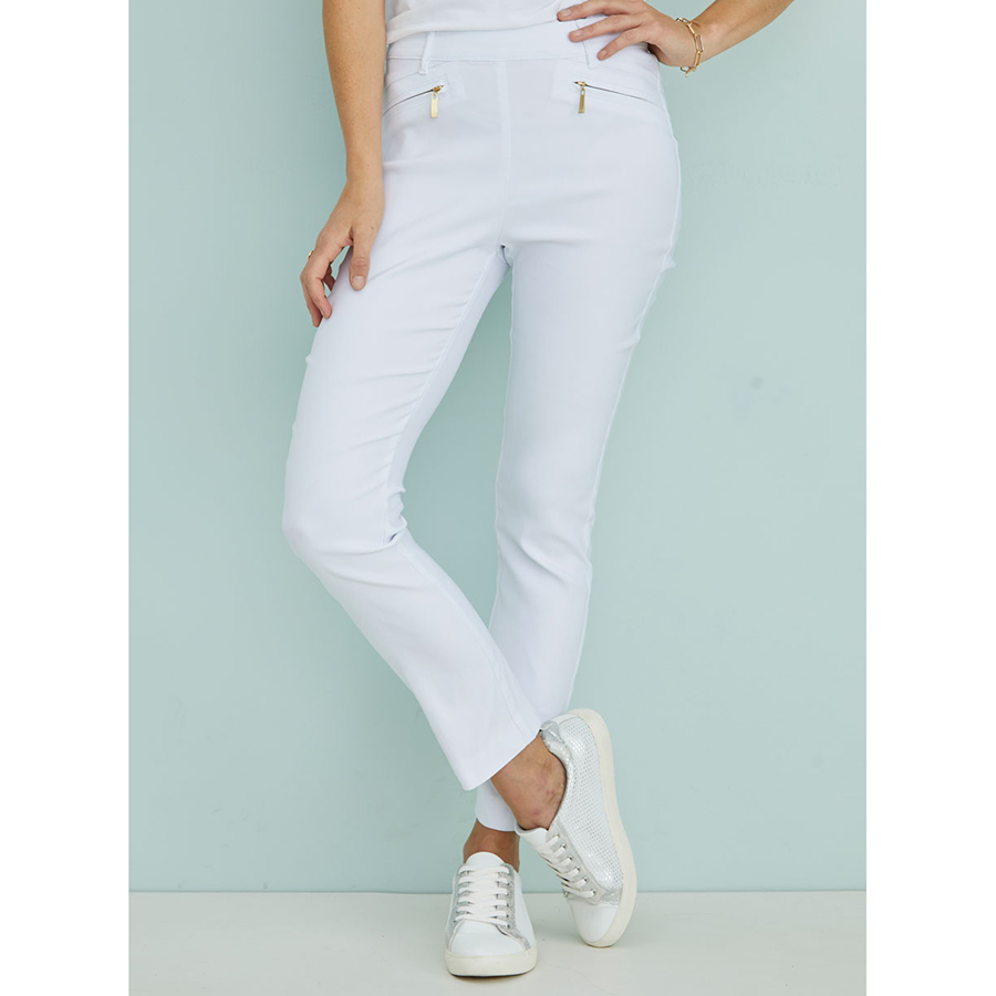 Chic 7/8 cropped pants in soft stretch canvas. Elastic waist, faux pockets, side slits – comfort and style in one! Viscose, Polyamide, Elastane.