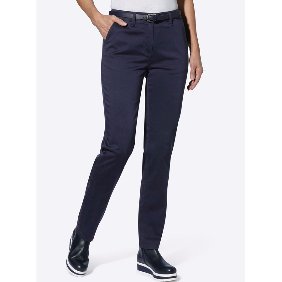 Chino trousers in a comfortable stretch fabric. With a shaped waistband, belt loops and a button and zipper fastening. 2 pockets at the front and 2 imitation welt pockets at the back. Belt not included. Length:105cm-109cm. 98% Cotton, 2% Elastane.
