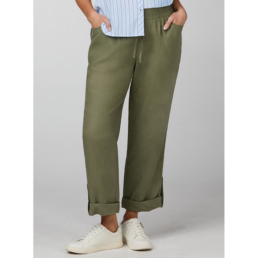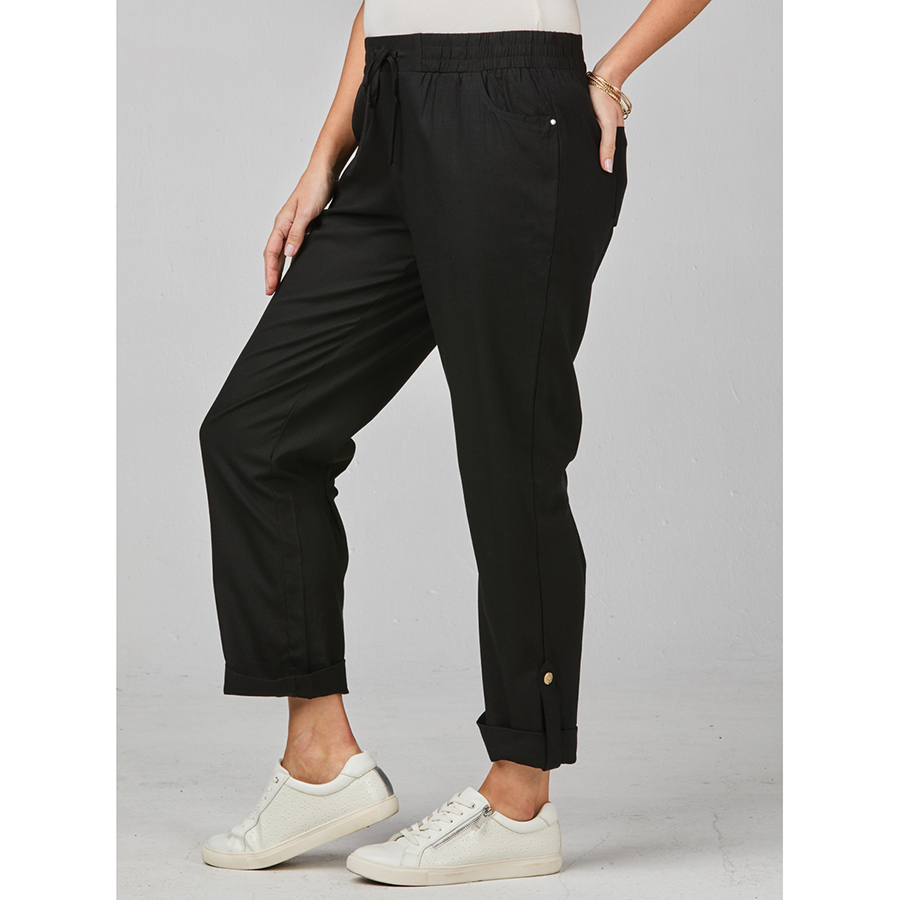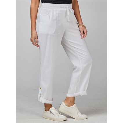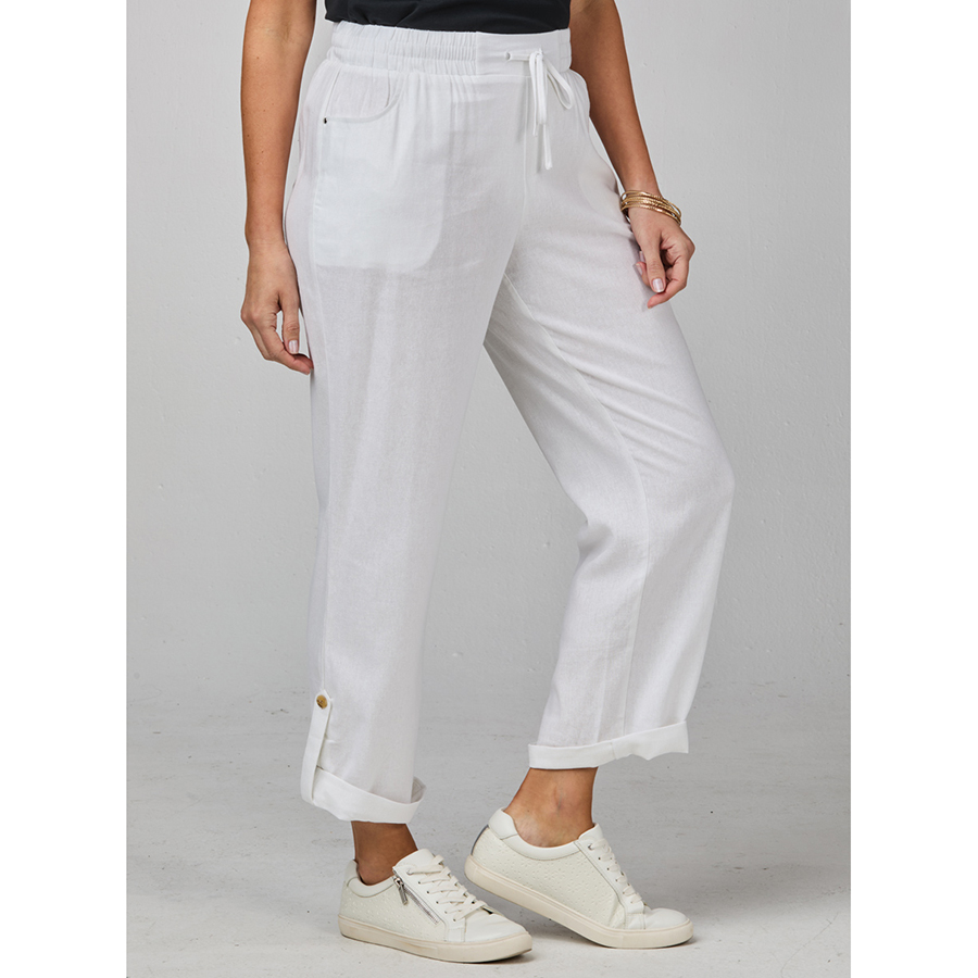 Effortlessly casual wide leg pant with chic rolled cuff detail in wonderfully soft viscose quality. Features elastic waist for a comfortable fit and easy to match colours. Two side pockets. 55% Linen, 45% Viscose.