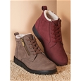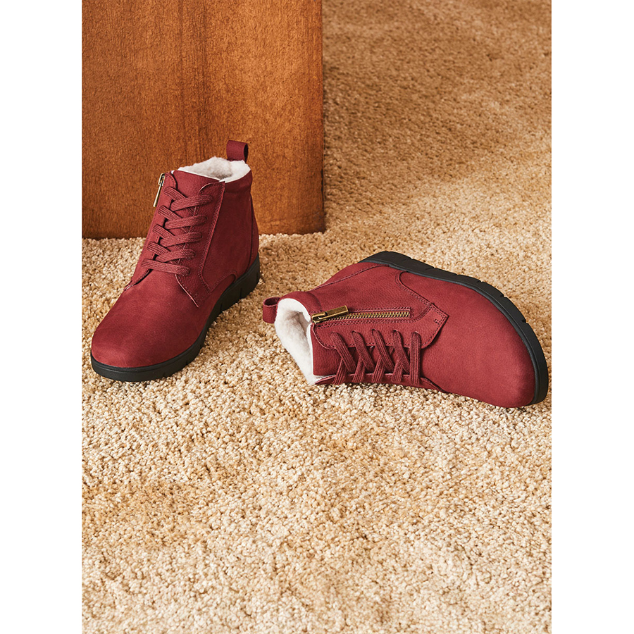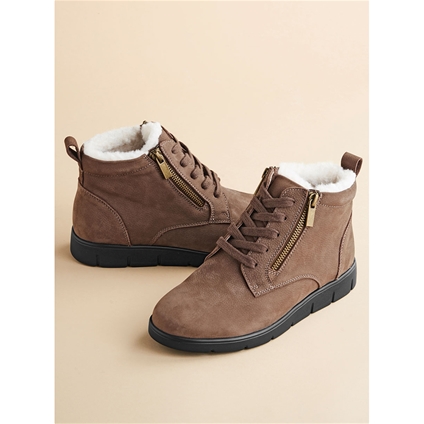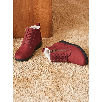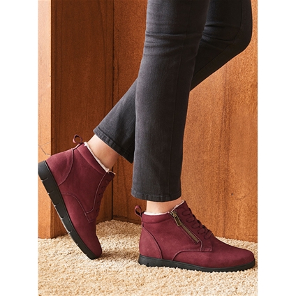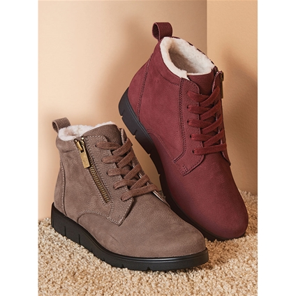 Sherpa-lined suede zip boots with a removable antibacterial-treated insole, designed to keep your feet warm and comfortable. Ankle boots that are easy to slip-on, easy to wear and soft to the touch, they combine cosy insulation with everyday practicality. Genuine Leather Upper. Non-slip polyurethane sole. 2.5cm wedge heel.