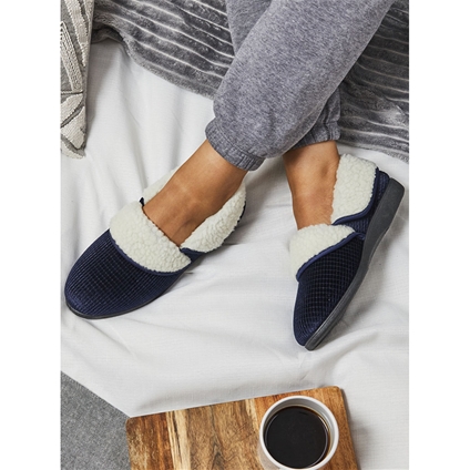 Enjoy ultimate versatility with our Worn 3 Ways Slipper — designed to adapt to your comfort needs throughout the day. Wear the plush sherpa collar up for maximum warmth, fold it down for a relaxed look, or slip them on mule‑style for quick, effortless comfort. The velour synthetic upper adds a soft, stylish finish, while the cosy sherpa lining keeps your feet snug all Winter long. Lightweight, flexible and wonderfully warm — the perfect slipper for every mood and moment. Velour Synthetic Upper and Sherpa Lining.