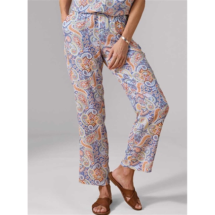 Made from soft, flowing viscose that is comfortable to wear. Its 7/8 cut which reveals the ankle is full of femininity. Elasticated waist and two side pockets. Straight legs. 100% Viscose.