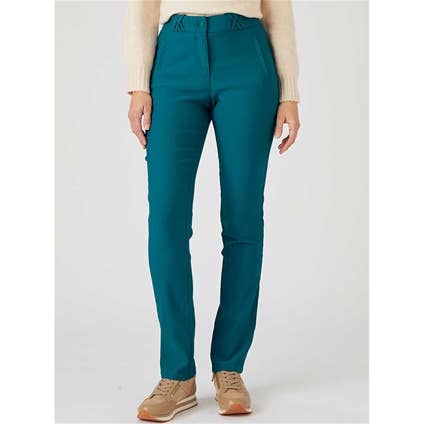 In a soft stretchy cotton, these pants are unbelievably comfortable. A back elastic with a button and fly front. Two front decorative pockets and crisscross details that can be used as belt loops. 98% Cotton, 2% Elastane.