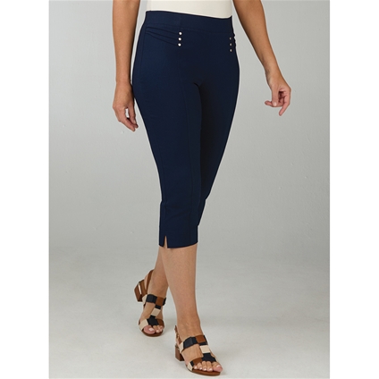 These pull-on pants will complete any outfit this season. Made in a soft comfortable viscose blend with stretch to move with you. Featuring decorative rivets alongside pintucks and a front panel to elongate the legs. 76% Viscose, 21% Nylon, 3% Elastane.