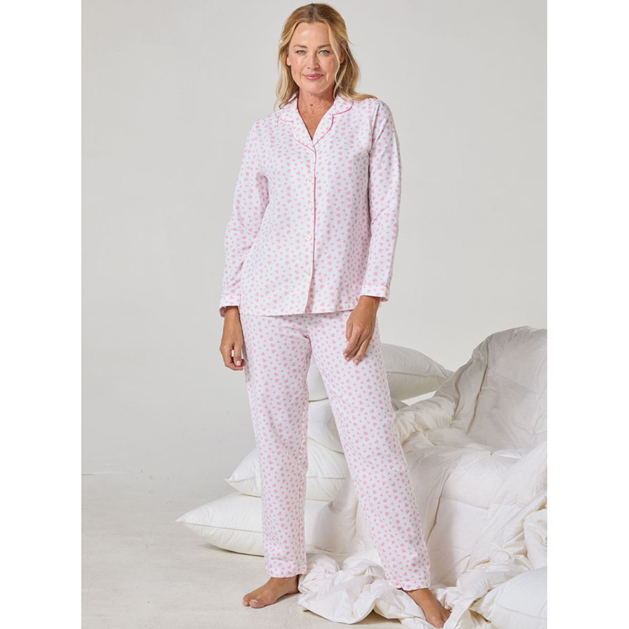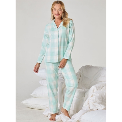 Brushed cotton PJ set in playful checks and prints, offering all-night comfort. 100% Cotton.