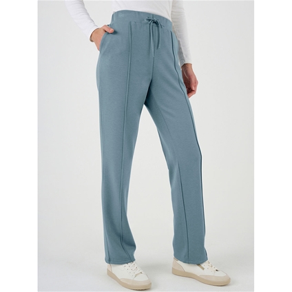 Thermolactyl lounge pants in soft, warm interlock mesh, with ribbed front pleat, elastic waistband, drawstring, side pockets and a straight cut for easy movement. Polyester, Acrylic, Viscose, Elastane.
