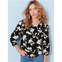 Designed to fit & flatter every shape, this printed blouse will easily be a season favourite. ¾ sleeves with elastic cuffs & round neckline with small decorative folds at the front. 100% Polyester.