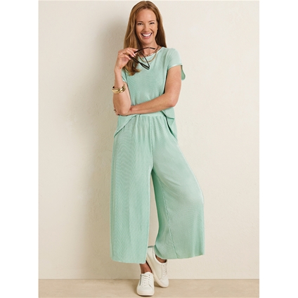 A loose fitting top in a plisse fabrication for style. A round neckline, short sleeves and a back keyhole button. 100% Polyester.