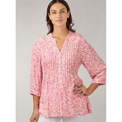 Soft, breathable and effortlessly stylish. This 100% viscose shirt features vibrant colours, pintuck detailing and a relaxed fit with a split neckline and three-quarter sleeves. A perfect pop of colour for any day. 100% Viscose.
