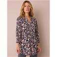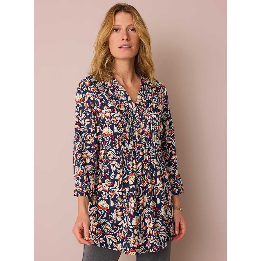 Designed for style, this tunic is adorned with an all over paisley print. An open V neckline with a short button placket and pleats. 3/4 length sleeves with button cuffs and side slits for ease of wear. 100% Viscose.