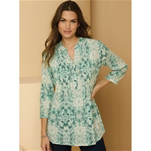 Comfortable lightly brushed cotton blouse perfect for transeasonal weather with a shirt collar and subtle V-neckline. The box pleat at the back makes it fall comfortably wide. With a button placket, bust darts and breast pockets. Long sleeves that end with button cuff and can be rolled up to 3/4 length. Slightly rounded hem with side slit. 100% Cotton.