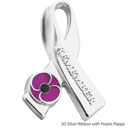 3D Silver Ribbon with Purple Poppy – 25W x 21.2H x 2.5D mm (SKU Code: PLELP0003)