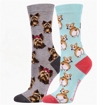 Breathable and naturally hypoallergenic in a stretchy 80% Bamboo Viscose, 15% Polyester, 5% Elastane blend, these socks keep feet cool and comfortable all day. They fit size W2 -8 and each pack includes 2 fun designs.