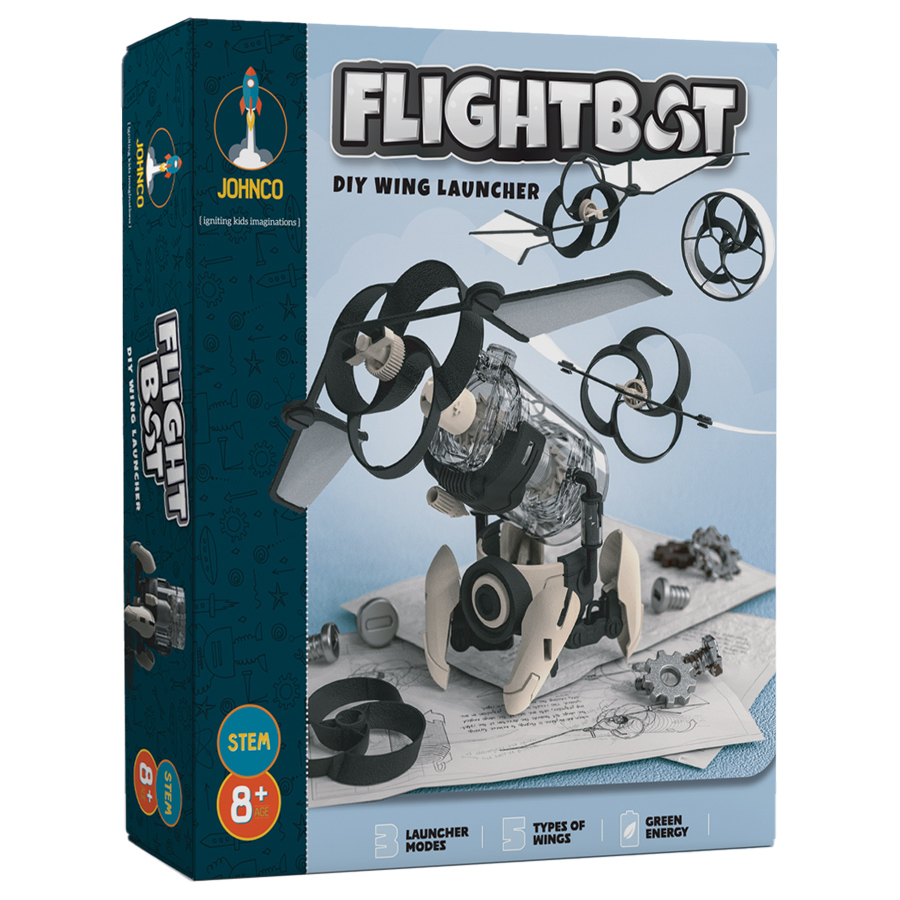 Build, launch and learn with Johnco FlightBot! This DIY wind-up wing launcher teaches physics through hands-on fun. No batteries needed – just creativity, competition and flying excitement for kids aged 8+. Dimensions: 7W x 29H x 24.5D cm.