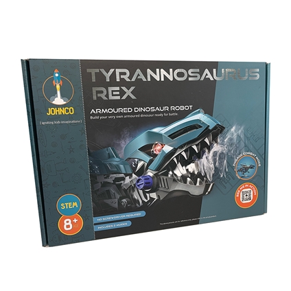 Build your own armoured Tyrannosaurus Rex robot for fierce, battle-ready fun! Your dinosaur converts to combat mode, its blades swinging as it walks. Kids can easily construct the robot without a screwdriver. Let the dino battles begin! Ages 8+