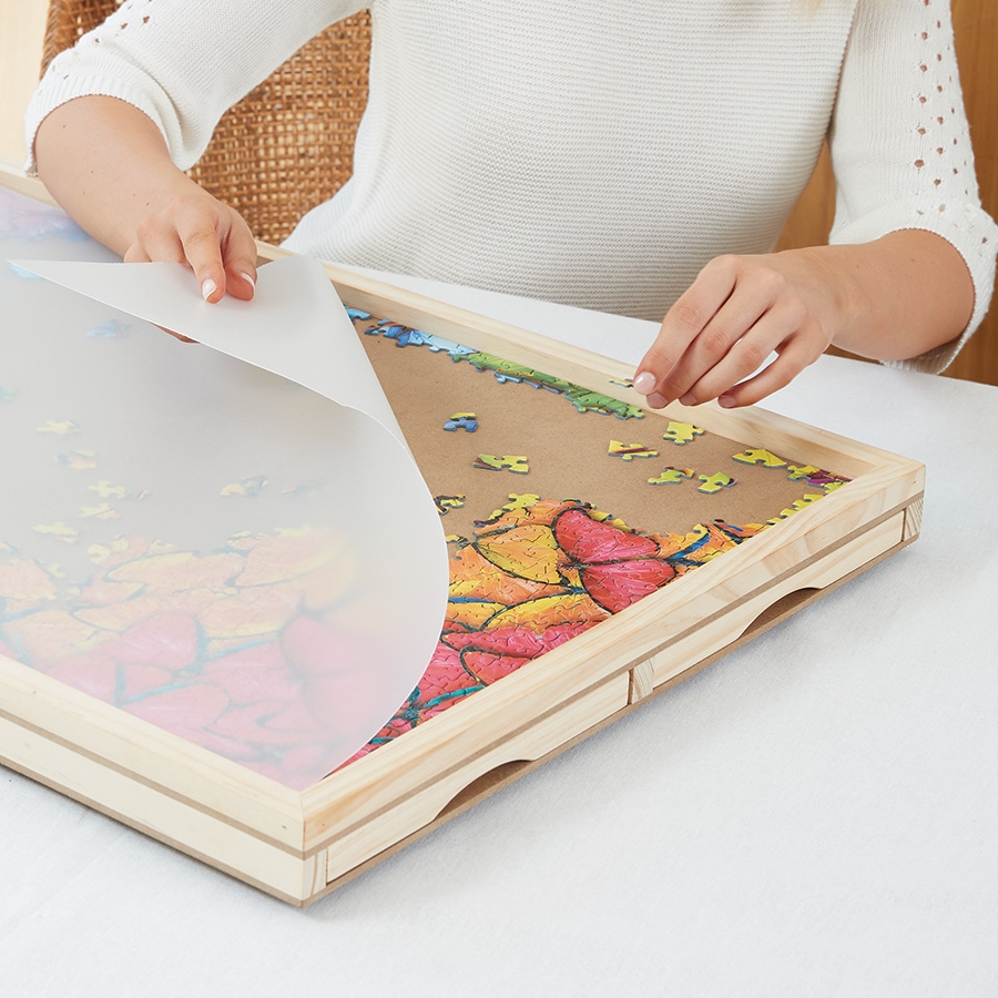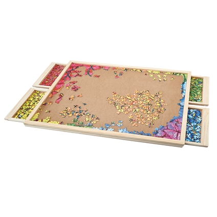Enjoy your hobby to the full with this attractive, natural pine puzzle organiser. Along with the ideal surface for completing your jigsaw you’ll have four roomy drawers for separating and storing the pieces. As it rotates, it’s also easy to share the fun. There’s a cover to protect your puzzle between sessions and you can choose from the Standard with a 68.5 x 48 cm working area or the Jumbo size with a 84 x 61 cm working area. Puzzle not included.