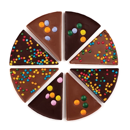 A witty gift for pizza lovers, these boxes hold 10 ‘slices’ of delicious milk and dark chocolate. Choose from three different toppings – Smarties and crispy pearls; mini marshmallows; and sugar pearls with hand-crafted hearts.