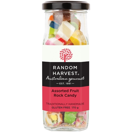Tiny pieces of scrummy hand made rock candy in a selection of delicious flavours presented in a glass jar. Australian made. Gluten Free.