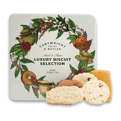 Choose from two delectable biscuit collections, each showcasing the elegance and indulgence of classic British baking. The Triple Chocolate Chunk Biscuits are a rich, buttery delight packed with generous chunks of milk, dark and white chocolate. Presented in a stylish 200g gift tin, they’re perfect for chocolate lovers and make a delicious treat. Prefer variety? The Luxury Biscuits Selection Tin offers an exquisite assortment of Cartwright & Butler’s finest biscuits, carefully selected and beautifully packaged to suit any occasion. 200g.