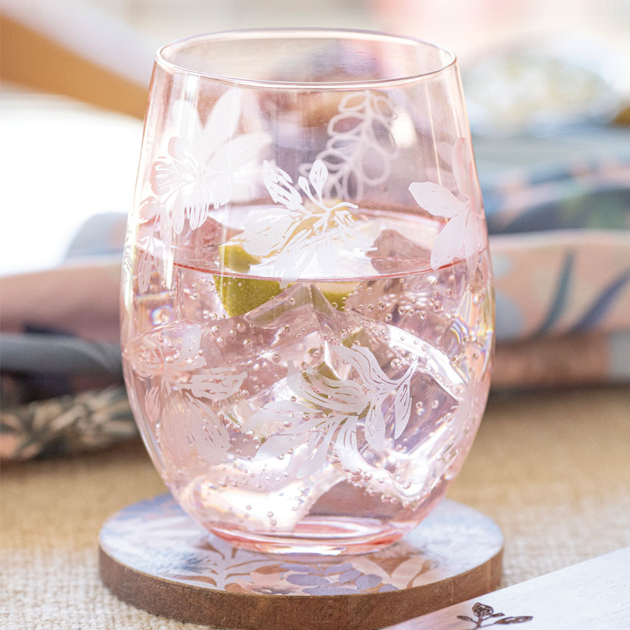 Featuring a beautiful botanical print in blue and blush tones. Designed to mix and match seamlessly across the table for relaxed yet considered hosting, the range includes delicate glassware and etched acacia wood serveware.