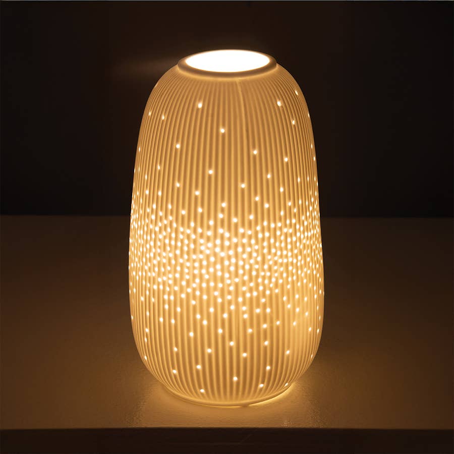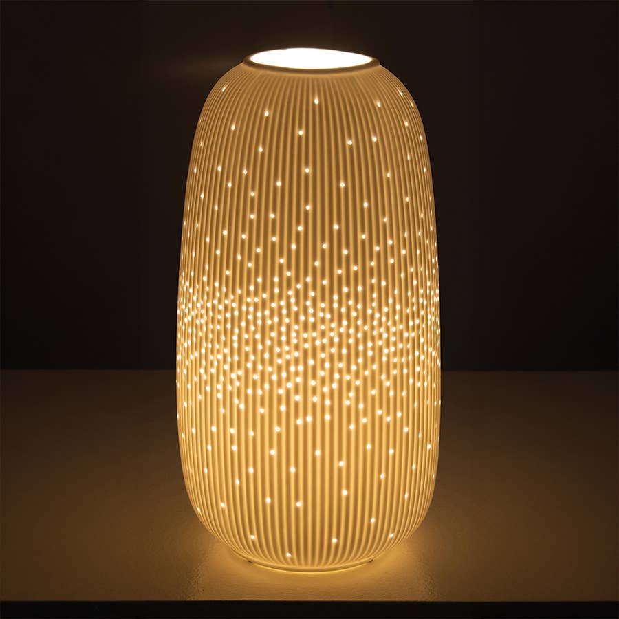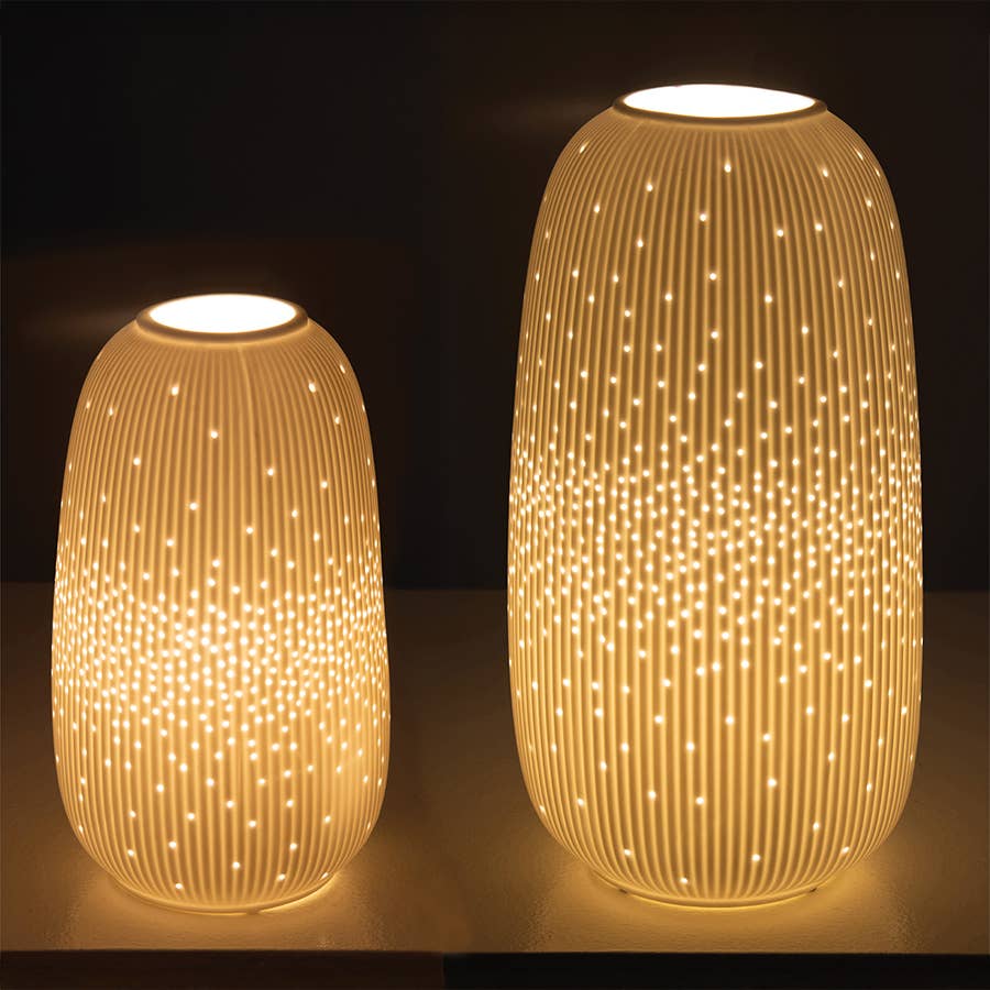 Sometimes the best décor pieces are the ones that feel effortless. This porcelain bullet lamp combines a clean, sculptural form with softly diffused light, making it easy to style in both modern and classic interiors. The matte white bisque porcelain gives it a refined, understated look, while the simple shape makes it ideal for bedside tables, consoles and living spaces. Available in small and large sizes, it also works beautifully as a pair for a more layered look. Quietly elegant lighting that adds atmosphere without clutter. Available in small and large sizes.