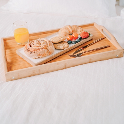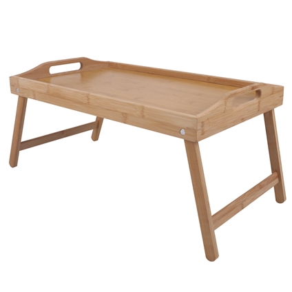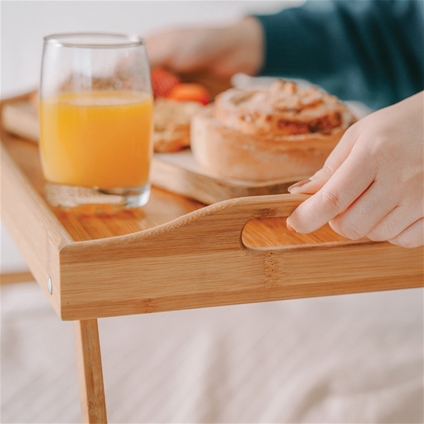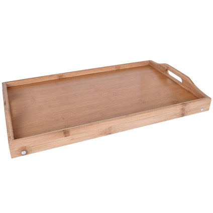 Enjoy breakfast in bed or work comfortably from the couch with this versatile bamboo tray. Its foldable legs allow easy storage, while the carved handles ensure simple carrying. Perfect for meals, laptops or reading. Made from durable, eco-friendly bamboo. Dimensions: 50 x 30 x 4 cm.