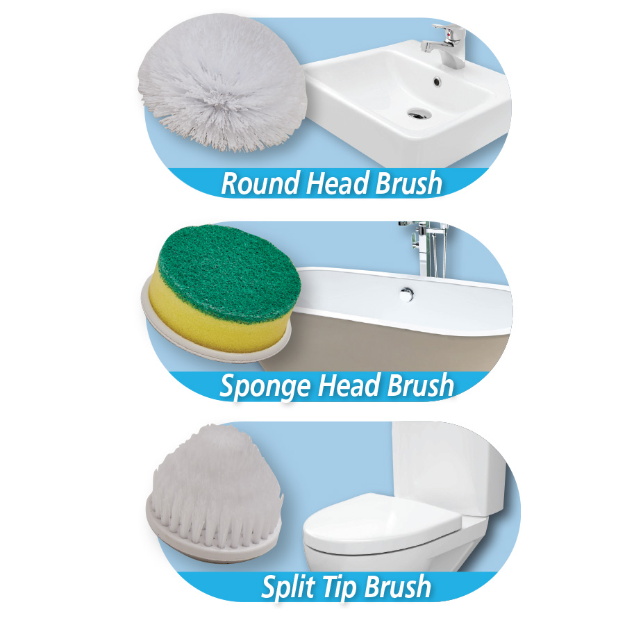 Some bathroom surfaces need a tough scrub to get them properly clean – and now you can enjoy that gleaming finish by simply attaching a brush head that will rapidly rotate through 360o to leave everything sparkling clean. This set includes a round scrubber and 3 sponges to tackle different materials plus a split tip brush to reach into tricky corners. The 37.5 cm handle helps reach those hard to get places. Easy to charge with the cable supplied, it will help you save time, energy and effort.