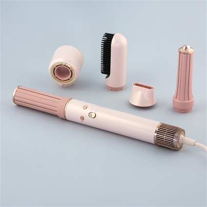 Create salon-worthy looks at home with the Hair Dryer Multi-Styler. This versatile tool comes with five pieces – hair dryer, styling nozzle, small and large curl barrels and a firm smoothing brush – so you can switch effortlessly between sleek, smooth, bouncy or curly styles. Adjustable heat settings ensure the perfect temperature for all hair types, while the cool shot locks your style in place for long-lasting results. Keep everything neat and accessible with the included acrylic storage box. Lightweight and easy to handle, this 1300W multi-styler in soft pink makes everyday styling simple, fun and tailored to you.