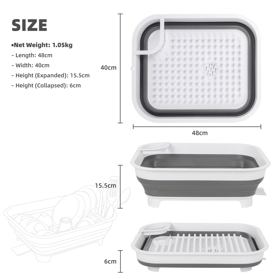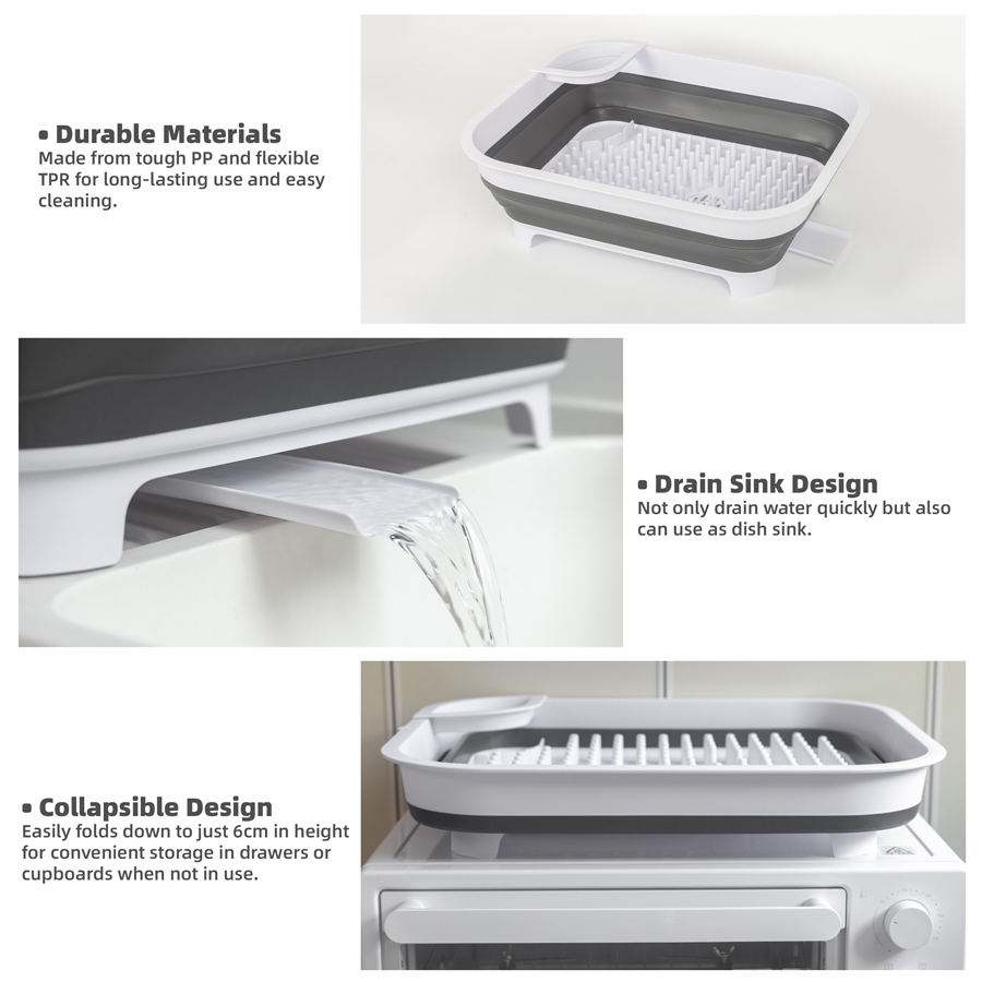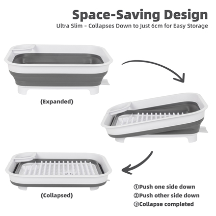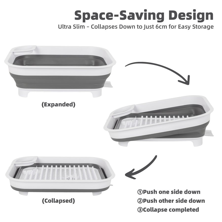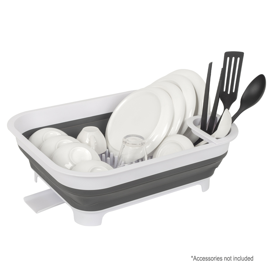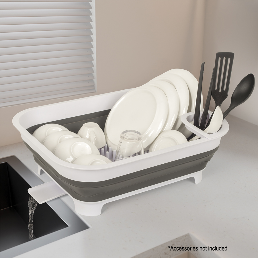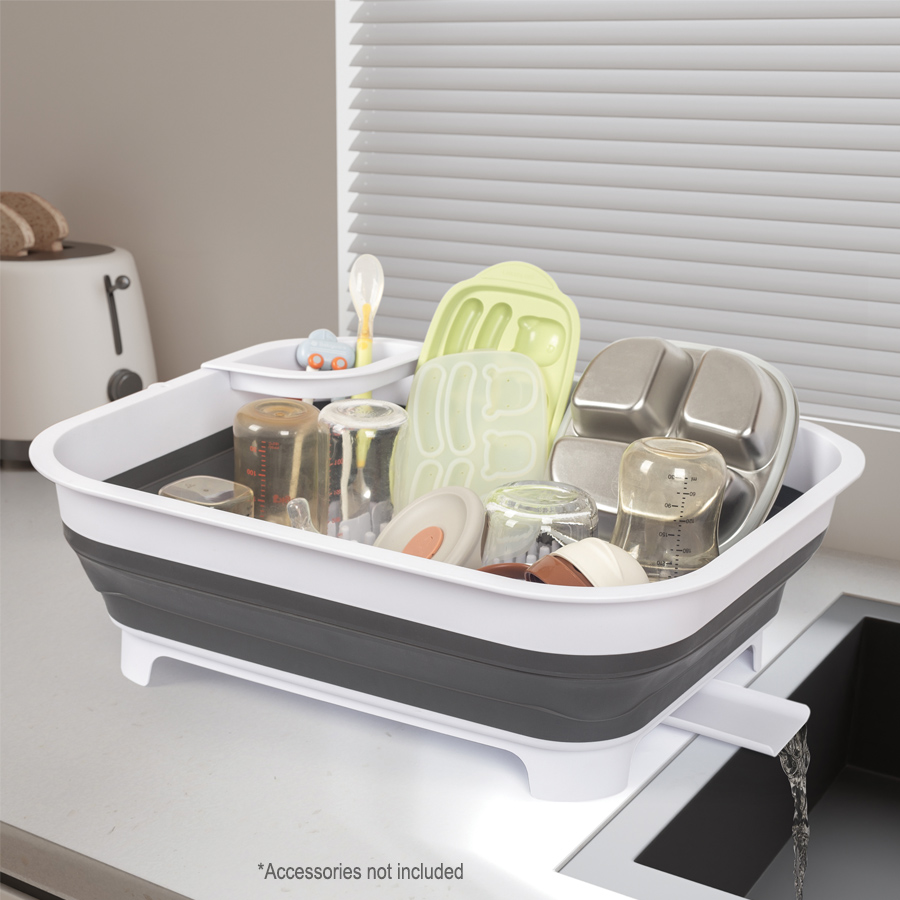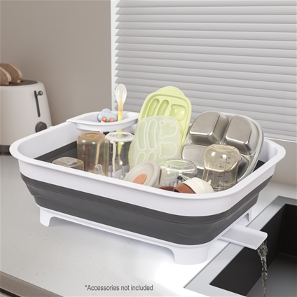 Save space and stay organised with this collapsible dish rack. Durable, lightweight and easy to store, it’s perfect for small kitchens, camping or everyday use – keeping your dishes dry and clutter-free. Measures 48L x 40W x 15.5H cm, and collapses to just 6 cm in height.