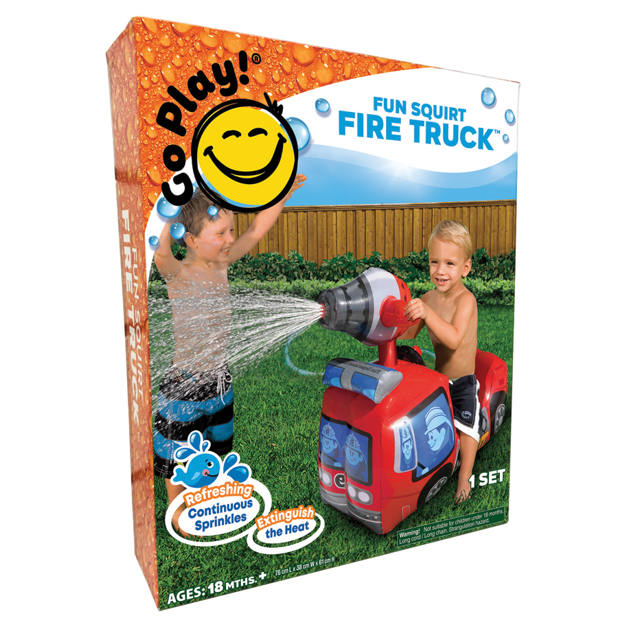 Extinguish the heat with a splash of fun this summer with the Fun Squirt Fire Truck! Steer your way into fun as the water-spraying cannon provides just enough refreshing water play for your toddler. Product size: 76L x 38W x 61H cm.
