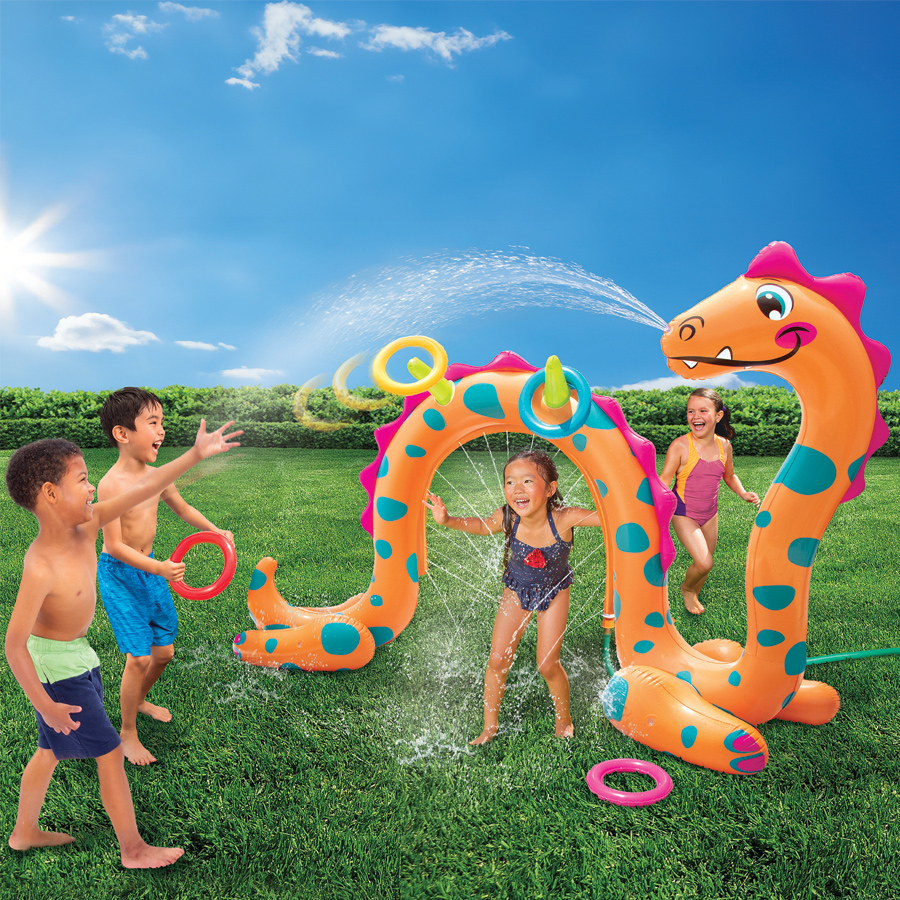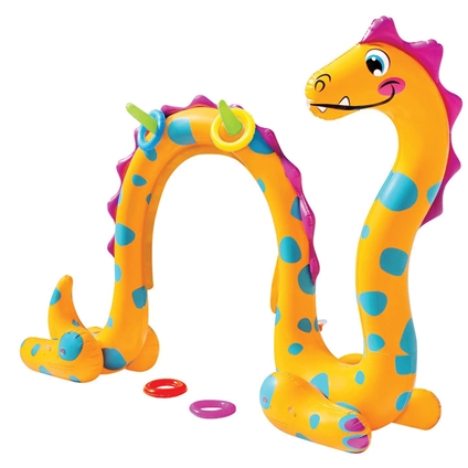 Unleash a splash-tastic adventure with this outdoor dinosaur water toy that promises endless fun in the sun! Kids will love running through the colourful arches and dodging playful sprays, making every summer day feel like a prehistoric party in the backyard. Refreshing activities include water-sprinkling Dino and 4 inflatable rings. Easily attach to your hose and ensure hours of outdoor fun. Product size: 214L x 53W x 152H cm. Ages 3+.