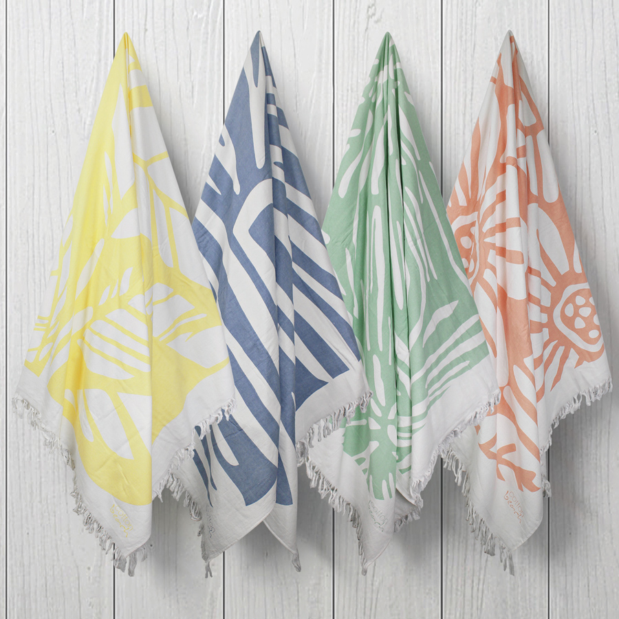 Soft extra large bamboo blend beach towel with fringe detail. Measures 90 x 170 cm.