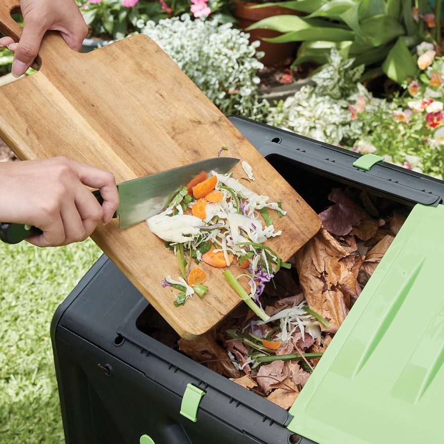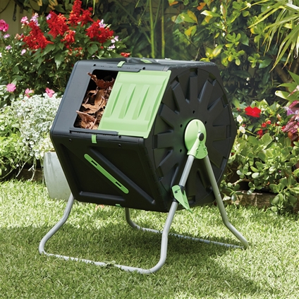 Did you know that composting reduces greenhouse gas emissions as the compost improves the health of your soil? This composter makes a positive choice easier with a tumbling, aerating action to speed up the process. A compact 74H x 60W x 58D cm, it holds 105 litres of organic waste which is easy to load through a sliding door. Easy to assemble, it’s made from UV resilient plastic with metal legs and a comfortable handle.